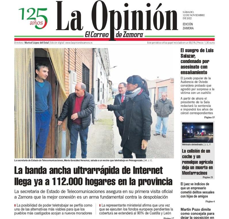 Los medios de la provincia de Zamora destacan la inversión del Gobierno en el despliegue de fibra