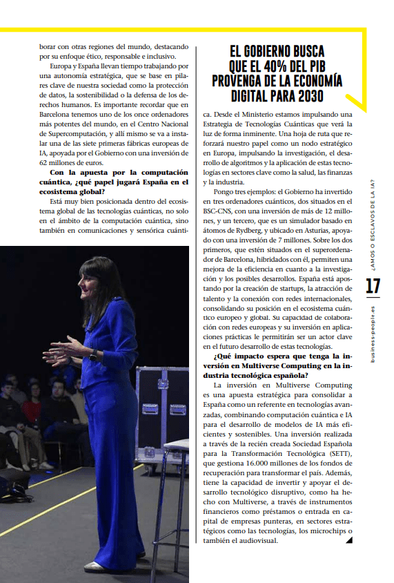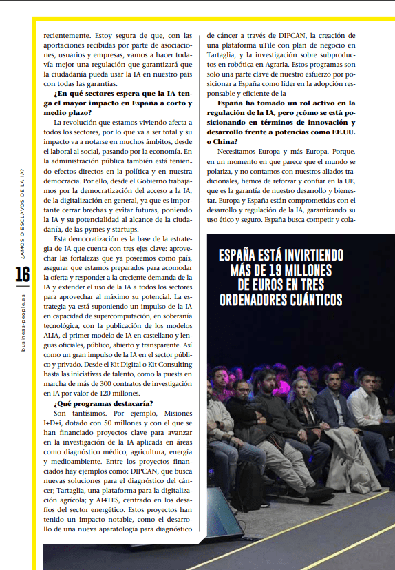Sosegada entrevista con la revista ‘Business people’ donde abordamos el papel de España en la construcción de un ecosistema digital sólido, y cómo desde el Gobierno de España estamos apostando por el talento, la supercomputación y el emprendimiento.