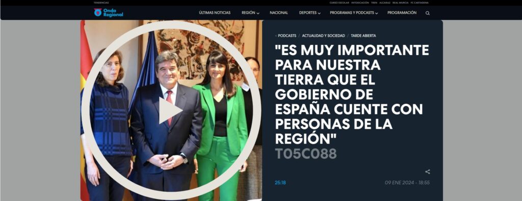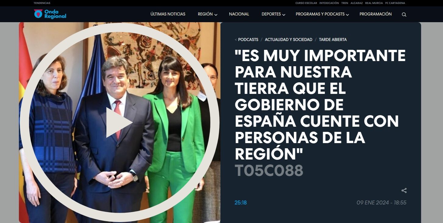 Entrevista en el programa ‘Tarde abierta’ de Onda Regional de Murcia sobre la nueva etapa con el ministro Escrivá: